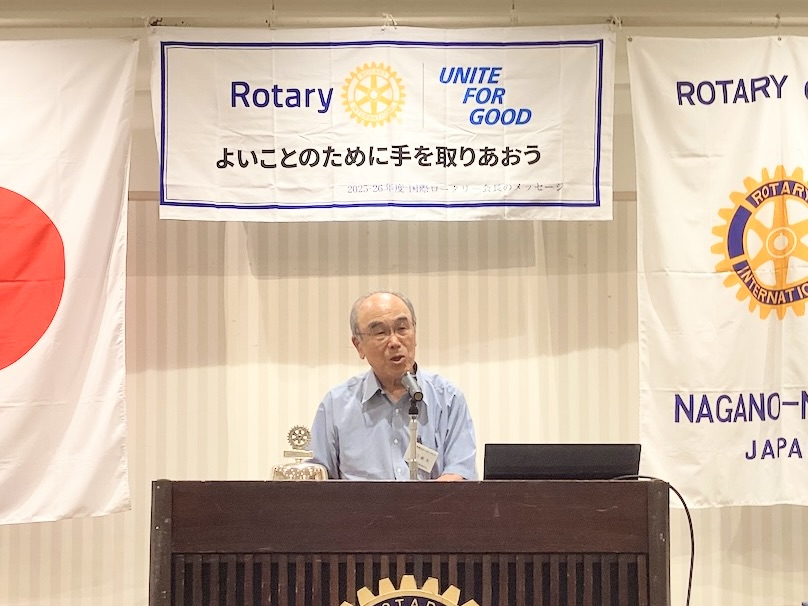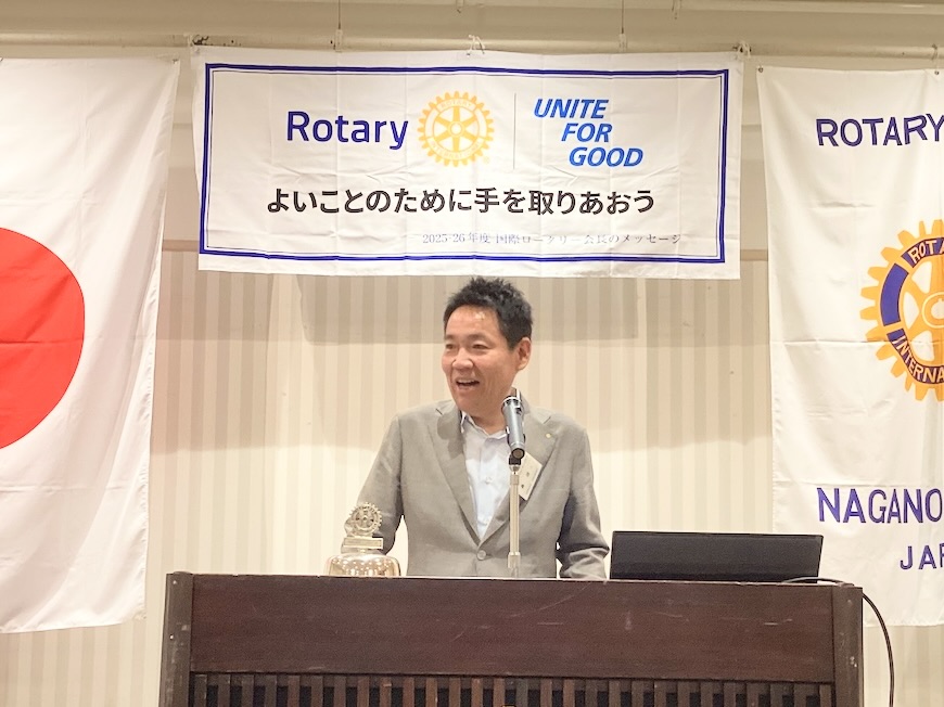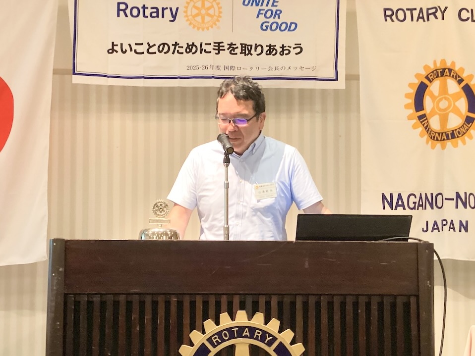 皆さんこんにちは。今日から新しい年度が始まります。まず、新入会員の峯村さん、小林さん入会ありがと うございます。最近はロータリーに限らず、世の中の様々な団体、企業、学校、医療をはじめ人の集まる団体の存続を脅かすようなニュースが増えています。わが長野北ロータリークラブも新入会員の方々のお知恵も借りながら、いかにして仲間を増やしてゆけばいいのか皆で考えてゆきましょう。静かに始まるかと思えた新年度でしたが、大きなニュースが昨年度末に飛び込んできました。国際ロータリークラブ会長エレクトであったマリオ・セザール氏の突然の辞任でした。急きょ新会長エレクトとしてイタリアの歯科医師 フランチェスコ・アレッツォ氏が選出されたのが6月8日です。昨年末から岡村幹事、理事・委員長の皆様とともに、今日の為に今年度版のクラブ計画書を作り上げていたのですが、その根幹ともいえる新年度のロータリーの方針が、マリオ氏の辞任により無くなってしまいました。一応、マリオ氏の方針はアレッツォ氏が引き継ぎ、昨日アレッツォ新会長のメッセージが配信されましたが、第2600地区事務所から新たな具体的な方針は示されぬままです。したがって皆様には今日お届けするべきクラブ計画書が、まだ印刷所にも納められていないという現実をお伝えしなければなりません。本日の理事会ではスケジュール・会計報告と新年度予算に関してはご報告させていただきますが、その他会員の皆様へのご報告と計画書のお渡しは、今しばらくお待ちいただきますようお願い申し上げます。大変申し訳ありませんでした。国際ロータリクラブに変わり皆様にお詫び申し上げます。そうは申しましても新年度は始まりましたので、長野北ロータリークラブ会長である私の方針は、今ここでお知らせしたいと思います。引き継がれた会長メッセージ「UNITE FOR GOOD 良いことの為に手を取り合おう」を活用し、各種活動の参加者や一般の人々にロータリークラブの知名度を上げてゆきましょう。具体的には様々な奉仕活動に公私、大小の区別なく、できる限り参加し長野北クラブの名前を認知していただけるよう活動してください。どうもロータリークラブはお金を出すだけの富裕層の社交団体と思われている節があり、一般の方々にはライオンズクラブの方が奉仕団体としてより認知されています。われわれは世界最大の民間奉仕団体ロータリークラブの会員です。それを自覚しましょう。皆さんが楽しめるようなプランを私たちが提案します。また具体的なプランがある方は理事会にまずお諮りいただき、認められた奉仕活動には会員は積極的に参加し、北クラブをPRしてください。一緒にはっぴを着て、のぼりをもって参加しましょう。これが今年度の会長方針です。みなさま暑い日が続きますが、体調管理には十分に気をつけていただき、岡村幹事から奉仕活動の参加を打診された時には「体調は絶好調です。待ってました、よろこんで!」と言っていただけるのを楽しみにしています。1年間、よろしくお願いいたします。