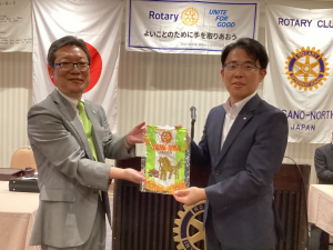 さらにもうお一人、東京町田・中ロータリークラブから野沢哲也様をお迎えしています。遠方よりのメーキャップありがとうございます。ようこそ長野北ロータリークラブにおいで下さいました。短い時間ではありますが、北クラブの雰囲気を感じ楽しんで頂ければと思います。