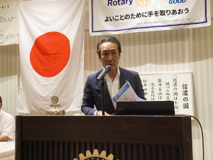 今日は米山奨学生の李くんの卓話がありますので、ここで終わりにしたいと思います。ありがとうございました。